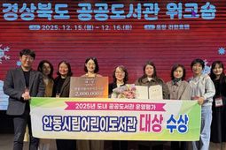 영남연합포커스 김진우 기자 | 안동시립어린이도서관이 ‘2025년 경상북도 공공도서관 운영 평가’에서 대상으로 선정돼, 12월 15일(월) 포항 라한호텔에서 열린 ‘경상북도 공공도서관 워크숍’에서 도지사 표창을 받았다. 경상북도는 도내 43개 시․군립 공공도서관을 대상으로 매년 운영 평가를 실시하고 있으며, 올해 평가는 2024년 실적을 기준으로 ▲예산 및 장서 확충 ▲사서 배치 비율 ▲전문성 등 12개 지표에 대한 정량평가와 도서관별 운영 사례를 반영한 정성평가를 합산해 그룹별(A~D)로 수상 기관을 선정했다. 안동시립어린이도서관은 그중 B그룹에서 가장 높은 평가 점수를 받아 대상을 수상하게 됐다. 특히, 지난해에 이어 진행 중인 ‘도서관 가을소풍 – 북크닉’ 프로그램이 좋은 평가를 받았으며, 주민이 문화를 경험하고 소통할 수 있는 복합문화 플랫폼으로 자리매김하기 위한 노력이 인정받은 결과로 분석된다. 안동시립도서관 웅부도서관이 2023년과 2024년 최우수상에 선정된 데 이어, 이번 어린이도서관의 대상 수상으로 안동시립도서관의 운영 역량을 입증하게 됐다. 시립도서관 관계자는 “이번 대상 수상은 시