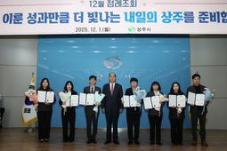 영남연합포커스 김진우 기자 | 상주시는 12월 1일, 12월 정례조회에서 2025년 상반기 적극행정 우수공무원 6명, 우수팀 1팀을 선발하여 시상했다. 시는 전 부서·읍면동 및 시민으로부터 추천된 사례를 대상으로 실적검증과 실무심사 후 1, 2차심사(주무팀장 및 부서장) 및 3차심사(시정조정위원회)를 거쳐, 4차 심사(적극행정위원회)를 통해 적극행정 우수공무원 우수 2명, 장려 4명과 우수팀 최우수 1팀을 최종 선정했다. 우수 등급을 수상한 공무원에는 농촌개발과 임희철 주무관의 ▲“위험교량 업사이클링을 통한 보행로 조성으로 주민안전확보”사례와 세정과 김희수 주무관의 ▲“시내버스 전면 무료화를 통한 전 시민 교통복지 확대”사례가 선정됐으며, 장려에는 미래농업과 구성엽 공무관의 ▲ “경북 최초, 농지개량 성토토양 11개 전 항목 분석”사례, 노인장애인복지과 김경현 주무관의 ▲“장애인 주차구역 신고에 따른 현장확인 및 신속한 민원 업무 처리”사례, 총무과 김대성 주무관의 ▲“상주시 원어민 화상영어 프로그램 도입”사례, 세정과 윤현혜 주무관의 ▲“비대면·맞춤형 체납세 안내를 위한 카카오톡 모바일 서비스 도입”사례가 선정됐다. &n