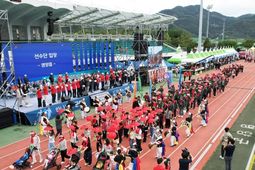 영남연합포커스 김진우 기자 | 영양군에서는 15일 영양공설운동장에서 제55회 영양군민체육대회를 성공리에 개최했다. 영양군체육회가 주최 및 주관하고 영양군에서 후원하는 제55회 영양군민체육대회는 15일 오전 6개 읍면과 향우회부, 직장부 등 500여명의 선수들의 입장식으로 대회를 시작했고, 1만여 명의 군민들이 참석하여 화합을 다졌다. 영양군체육회에서는 일반부 8개 종목(100m, 400m릴레이, 열차경기, 공튀기기, 이어달리기, 단체줄넘기, 단체줄다리기, 투호넣기)과 어르신부 3개 종목(훌라후프, 고무신멀리던지기, 투호넣기)으로 다양하게 경기종목을 구성하여 군민의 즐거움을 더했다. 한편 영양군에서는 종목별 경기 시작 전 관련 시·군 모두가 참여한'남북9축 고속도로 유치 염원 퍼포먼스'로 영양군의 숙원사업인 남북9축 고속도로의 조기 건설을 염원하는 퍼포먼스를 진행했고, 인기가수 초청공연을 내용으로 하는 '군민화합 한마당'프로그램을 마련하여 군민 모두가 하나로 어우러지는 진정한 화합의 무대를 완성했다. 오도창 영양군수는 “지역의 유서깊은 잔치인 영양군민체육대회가 산불과 일상에 지친 군민들의 몸과 마음을