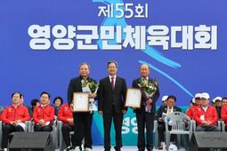 영남연합포커스 김진우 기자 | 영양군은 지난 15일 열린 제55회 영양군민체육대회에서 2025년 '영양군민상' 수상자에 대한 시상식을 개최했다. 올해 영양군민상은 ▲지역개발 부문 권성규 씨, ▲사회봉사 부문 이희화 씨가 각각 수상의 영예를 안았다. '영양군민상'은 매년 군의 명예를 높이고 지역 발전에 기여한 군민에게 수여하는 상으로, 1994년 제정 이후 영양의 발전을 이끌어 온 대표적인 인물들에게 수여되어 왔다. 이번 수상자는 읍·면장 및 기관단체장의 추천을 받아, 심사위원회의 엄정한 심사와 의결을 거쳐 최종 선정됐다. ‘지역개발 부문’ 수상자 권성규 씨(63세)는 청기면 행화리 출신으로, 영양인재육성장학회 기탁과 불우이웃돕기 활동, 재난 복구 지원 등 다양한 사회공헌을 이어오며 꾸준한 고향 사랑을 실천해 온 점이 높이 평가됐다. 또한 경상북도 모범 납세자로 선정되는 등 지역사회의 신뢰와 모범을 보여 왔다. ‘사회봉사 부문’ 수상자 이희화 씨(71세)는 일월면 도곡리 출신으로, 마을 환경 개선과 주민 복지 지원, 공동체 공간 조성, 축제 후원 등 다양한 봉사활동을 통해 지