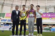 영남연합포커스 김진우 기자 | 예천군 육상 직장운동경기부 나마디 조엘 진 선수가 제106회 전국체전에서 ‘스프린터 더블’(100m, 200m 동시 우승)에 이어 400m 계주에서도 금메달을 획득하며 3관왕을 달성했다. 대한민국의 육상 단거리 기대주 나마디 조엘 진 선수는 19일, 100m 10초 35로 금메달을 획득했으며, 다음날 20일에는 200m에서 현역 최강자 고승환(광주광역시청) 선수를 제치고 금메달을 획득한 데 이어 21일, 400m 계주에서도 금메달을 획득하여 대한민국 남자 단거리 최강자임을 다시 한번 확인했다. 앞서 조엘 진은 지난 9월 27일 홍콩에서 열린 제2회 동아시아 20세 이하(U-20)육상선수권대회 100m 예선에서 10초 26에 결승선을 통과하며, 자신의 종전 최고 기록(10초 30)을 0.04초 단축하는 등 이번 대회를 위해 철저히 준비를 해왔다. 조엘 진 선수는 “지난 시즌 내내 제 장점을 극대화하고 단점을 보완하는 훈련을 계속해왔던 것이 이번 전국체전에서 좋은 결과로 이어진 것 같다”며, “초반 스타트에서 뒤처지지 않으면서, 후반 가속력을 살릴 수 있었던 것이 3관왕의 핵심이었다”