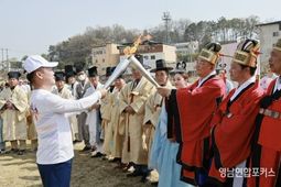 영남연합포커스 김진우 기자 | 예천군은 3일 제64회 경북도민체육대회의 시작을 알리는 성화 채화 및 봉송 행사를 개최해 대회의 열기를 한껏 고조시켰다. 이번 대회는 역사상 최초 공동 개최로 진행되는 만큼, 화합의 의미를 담아 경주 토함산을 시작으로 예천 개심사지, 안동 임청각에서 각각 성화를 채화한 뒤 주요 구간을 거쳐 성화 봉송 행사를 진행했다. 예천군은 이날 예천읍 원도심과 경북도청 신도시 주요 구간을 함께할 성화 봉송단을 12개 읍면 주민대표 60인으로 구성했으며, 주자 12구간, 차량 2구간 등 총 14구간에 걸쳐 성화 봉송을 진행했다. 성화 봉송 행사는 군민들의 환영 속에 진행됐으며, 3개 시·군에서 각각 봉송된 성화는 천년숲에서 합화된 후 개막식 현장의 성화대에 최종 도착해 도민 화합의 불을 밝혔다. 예천군 관계자는 “대회 역사상 최초로 공동 개최되는 이번 체전이 진정한 도민 화합의 장이 되길 바란다”며 “안전한 대회 운영에 최선을 다하겠다”고 밝혔다.