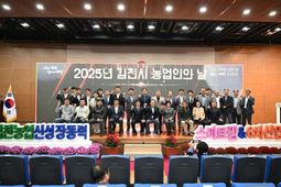 영남연합포커스 김진우 기자 | 김천시 농업인단체협의회에서는 지난 10월 18일 농업기술센터 농업인교육관에서 400여 명의 농업인이 참여한 가운데 '2025년 김천시 농업인의 날 행사'를 개최하여 큰 호응을 얻었다. 농업인의 날은 매년 11월 11일로 정해진 법정 기념일로 농업의 중요성을 되새기고 농업인의 긍지와 자부심을 고취하는 날이지만, 김천시농업인단체협의회에서는 보다 많은 시민들과 함께하기 위해 농촌체험페스티벌이 열리는 10월 18일에 행사를 개최했다. 행사는 생활개선회 장구난타팀의 식전 공연을 시작으로 내빈 소개, 개회 및 국민의례, 우수농업인 표창 수여, 기념사, 축사, 퍼포먼스 순으로 진행됐으며, 우리 지역 농업 발전을 위해 헌신한 10명의 농업인에게 표창이 수여됐다. 특히, 이날 행사에는 지속 가능한 농업, 미래를 향한 김천농업의 새로운 도약 '스마트팜&6차산업'을 주제로 한 비전 선포 퍼포먼스가 펼쳐져 참가자들의 큰 박수를 받았으며, 농업인단체협의회에서는 농업인의 날 의미를 더욱 확산하기 위해 행사 전날인 17일에 KTX김천(구미)역에서 쌀소비 촉진을 위한 가래떡 나눔 행사를 열고 ‘우리 쌀, 우