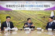 영남연합포커스 김진우 기자 | 경주시는 ㈜태웅산업, ㈜수시스템과 내남면 명계3일반산업단지 내 공장 신설 및 본사 이전을 위한 투자양해각서(MOU)를 체결했다고 15일 밝혔다. 지난 13일 시청 내 대외협력실에서 열린 협약식에는 주낙영 경주시장을 비롯해 김필규 ㈜태웅산업 대표이사, 방예현 ㈜수시스템 대표이사 등 기업 관계자들이 참석했다. 이번 협약에 따라 두 기업은 명계3산업단지 동일 부지 내 필지를 분할 활용해 신규 공장을 건립할 계획이다. ㈜태웅산업은 약 7,920㎡ 규모 부지에 77억 원을 투자해 자동차 부품 생산 공장을 신설하고 15명을 신규 고용할 예정이다. ㈜수시스템은 약 3,967㎡ 부지에 48억 원을 투자해 본사를 경주로 이전하고 생산시설을 구축하며 27명을 신규 채용할 계획이다. 두 기업의 총 투자 규모는 125억 원, 고용 규모는 42명으로 이번 투자가 명계3일반산업단지 활성화와 지역 자동차 부품 산업 경쟁력 강화에 기여할 것으로 기대된다. ㈜태웅산업은 1998년 설립돼 2000년 경주 외동으로 이전한 이후 자동차 및 전자제품 부품을 생산하며 지역 자동차 부품 산업과 함
