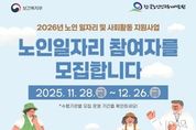 영남연합포커스 김진우 기자 | 의성군은 지역 어르신들의 건강한 노후생활과 안정적 소득 활동을 지원하기 위해 12월 9일부터 16일까지 '2026년 노인일자리사업'참여자 2,706명을 모집한다고 밝혔다. 노인일자리사업은 어르신들의 활기차고 건강한 노후를 지원하기 위한 대표적 노인복지 정책으로, 2026년에는 112억 원의 예산을 투입해 ▲공익활동 2,145명 ▲역량활용 331명 ▲공동체사업단 260명 등 총2,706명의 어르신이 일자리에 참여하여 총 31개 사업단을 운영할 계획이다. 참여자 모집은 노인일자리사업 위탁 수행기관인 의성시니어클럽과 대한노인회 의성군지회가 담당하며, 9일부터 16일까지 각 읍·면사무소 및 읍·면 분회경로당 순회 방문을 통해 신청 접수를 진행한다. 선발은 관련 기준에 따라 고득점자 순으로 이뤄질 예정이다. 김주수 의성군수는 “노인일자리사업은 어르신들의 신체적·정신적 건강 증진과 사회적 관계 형성, 경제적 도움 등 여러 측면에서 긍정적인 효과가 큰 사업”이라며 “앞으로도 어르신들의 사회적 역할과 활력을 높일 수 있도록 다양한 일자리 정책을 적극 추진하겠다”고 밝혔다.