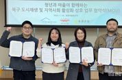 영남연합포커스 김종설 기자 | 대구 북구 도시재생지원센터와 지역 청년기업 커뮤니티디자인 내마음은 콩밭 협동조합, 태종기획은 1월 19일 복현어울림센터에서 북구 지역사회 활성화 및 도시재생사업의 효과적인 추진을 위해 상호 협력 강화 업무협약(MOU)을 체결했다. 세 기관은 이번 협약을 통해 도시재생과 커뮤니티디자인, 청년 기획 역량을 연계하여 청년과 마을이 함께 어우러지는 지속 가능한 지역공동체 조성을 목표로 상호 협력해 나가기로 했다. 협약의 주요 내용으로는 ▲북구 도시재생사업과 연계한 커뮤니티 활성화 프로그램 공동 기획·운영 ▲청년 및 대학생의 지역사회 참여 확대를 위한 청년 문화 프로그램 및 역량강화 활동 추진 ▲청년과 주민이 함께 참여하는 주민 주도형 도시재생 프로젝트 협력 ▲도시재생 현장지원 활동 및 주민 교육·컨설팅 사업 공동 추진 등이 포함되어 있다. 특히 이번 협약은 청년의 기획력과 창의성이 마을의 일상과 결합해 청년에게는 지역에서의 실질적인 활동 기회를 제공하고, 마을에는 새로운 활력을 불어넣는 상생 구조를 만들어간다는 점에서 의미가 크다. 김은윤 북구 도시재생지원센터장은 “이번 3자