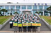 영남연합포커스 김진우 기자 | 영주시는 지난 8일 시청 전정에서 ‘중대재해 제로화를 위한 3Go 캠페인’을 열고 안전한 근로환경 조성에 대한 의지를 다졌다. 이번 캠페인은 중대재해를 예방하고 안전한 일터를 만들기 위해 마련됐으며, 전 부서가 함께 참여해 ‘안전은 지키고, 책임은 다하며, 재해는 막는다’는 실천 의지를 모았다. 영주시 부서장과 읍·면·동장이 참여한 이날 캠페인은 시청 전정에서 “안전은 지키GO, 책임은 다하GO, 중대재해는 막GO”라는 구호를 제창하고 카드섹션 퍼포먼스를 통해 안전문화 확산의 필요성을 알렸다. 영주시는 ‘안전한 일터 조성으로 근로자가 행복한 영주시 만들기’라는 슬로건 아래, 관리·감독자의 안전보건 책임을 강화하고 직무 담당자의 안전의식을 높여 산업재해 예방 분위기를 확산할 방침이다. 또한 행사에 앞서 각 부서장은 사업장 안전점검 이행사항을 안내받고 이를 현장에 적극 반영하기로 했다. 특히 이번 캠페인은 최근 사회적으로 산업재해에 대한 우려가 높아지는 상황에서 마련돼 더욱 의미가 크다. 영주시는 이번 행사를 계기로 공직사회 내부에서부터 안전관리
