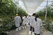 영남연합포커스 김진우 기자 | 봉화군은 임대형 스마트팜에 입주한 스마트원예작목반원 9명이 지난 27일 관외지역의 농업회사법인에서 운영하는 대규모 스마트팜 벤치마킹을 했다고 밝혔다. 이번 벤치마킹은 올해 1월 봉성면 창평리에 준공된 임대형 스마트팜단지에 입주하여 정식한 서양계 완숙 토마토가 오는 4월 중순 본격적인 수확을 앞두고 대규모 스마트팜을 견학하여 선별, 물류 등 유통관리 등 운영 노하우를 배우기 위해 이뤄졌다. 작목반원들은 충남 논산시 광석면 소재 팜팜 스마트팜을 방문하여 관계자의 안내에 따라 유리온실, 복합환경제어시스템, 양액공급시스템, 에너지냉난방 시스템을 둘러보고 양광식 대표로부터 토마토 재배기술, 유통 노하우를 전해 듣는 시간을 가졌다. 2017년 11월 문을 연 농업회사법인 팜팜은 토마토 재배 및 유통 전문회사로서 10.7ha 규모의 스마트팜에서 방울토마토와 완숙토마토를 재배하여 신세계 푸드와 계약재배를 하고 있으며, 2024년 402억원의 매출을 올린 바 있다. 특히 이 스마트팜에서는 여름에는 냉방시스템을 이용하고 광량이 부족한 겨울에는 LED 보광등을 활용해 사계절 내내 토마토가