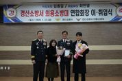 영남연합포커스 김진우 기자 | 경산소방서 의용소방대 연합회는 1월 23일 오후 6시 30분, 경산소방서 2층 대청마루(대회의실)에서 경산소방서 의용소방대 연합회장 이·취임식을 개최했다. 이날 행사에서는 제11대 김종길 연합회장의 이임과 함께 제12대 최한열 연합회장의 취임을 공식적으로 알리며, 의용소방대 발자취를 담은 동영상 시청, 공로패 및 임명장 수여, 연합회기 전달, 이·취임사와 격려사, 축사, 기념촬영 등의 순으로 진행됐다. 행사에는 한창완 경산소방서장을 비롯한 소방 관계자 11명과 의용소방대장 및 퇴임 대장 등 20명, 가족과 조현일 경산시장을 비롯한 축하객 30명 등 총 60여 명이 참석해 새 출발을 축하하고 그간 지역 안전을 위해 헌신해 온 의용소방대의 노고를 격려했다. 최한열 신임 연합회장은 취임사를 통해 “그동안 연합회를 이끌어 주신 김종길 전 연합회장의 노고에 깊이 감사드린다”며, “앞으로 대원 한 분 한 분의 목소리에 귀 기울이며, 서로 신뢰하고 소통하는 화합의 연합회를 만들어 가겠다”고 포부를 밝혔다. 한창완 경산소방서장은 격려사에서 “재임 기간 동안 솔선수범하며 연합회를 이끌