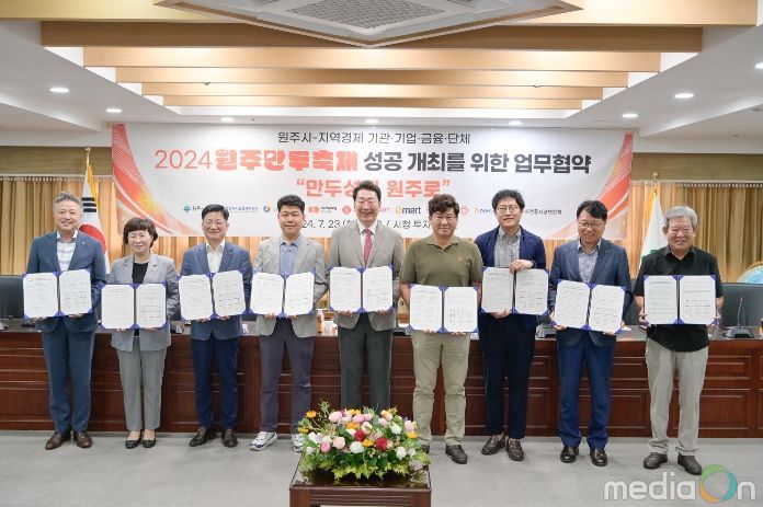 영남연합포커스 기자 | 원주시는 이달 23일 오전 9시 시청 7층 투자상담실에서 지역경제 8개 기관·기업·금융·단체와 ‘2024 원주만두축제’ 성공 개최를 위한 업무협약을 체결했다.