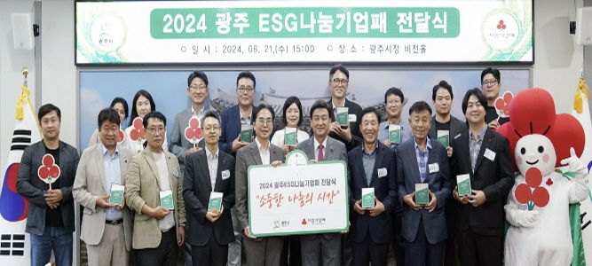 영남연합포커스 김진우 기자 | 광주시는 지난 21일 시청 비전홀에서 지역사회를 위해 기부를 실천한 17개 기업에 ESG(환경·사회·지배구조) 나눔 기업 인증패를 전달했다.