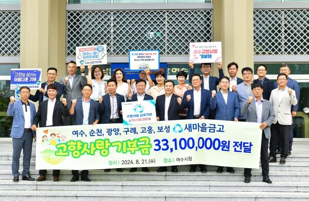 최영욱 새마을금고 여수시협의회장은 “인근 지역 새마을금고와 연대해 지역 상생발전을 위한 고향사랑기부제에 참여하게 되어 매우 기쁘다”고 소감을 전했다.