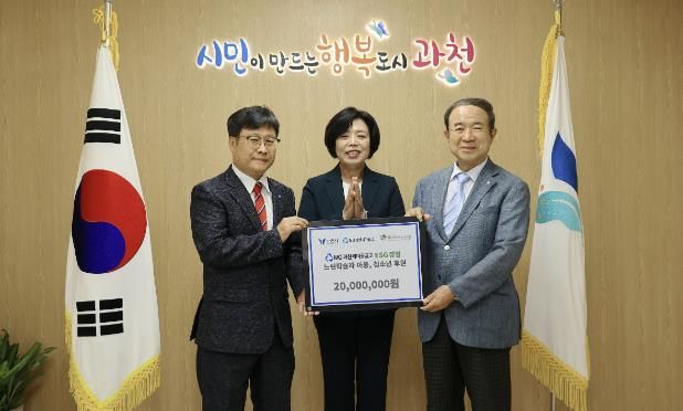 후원금 전달식은 시청 시장 집무실에서 열렸으며, 신계용 시장과 한상봉 과천새마을금고 이사장, 이학준 과천시 장애인복지관장 등 관계자가 함께 참석했다.