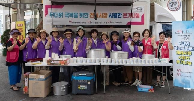 이날 행사는 온기나눔 범국민 캠페인의 일환으로 진주시자원봉사센터와 경남여성리더봉사단이 함께 준비하고 경상남도자원봉사센터가 ‘효성 달리는 행복 밥차’를 후원하면서 논개시장을 찾은 주민과 시장 상인에게 시원한 미숫가루 800잔을 제공했다.