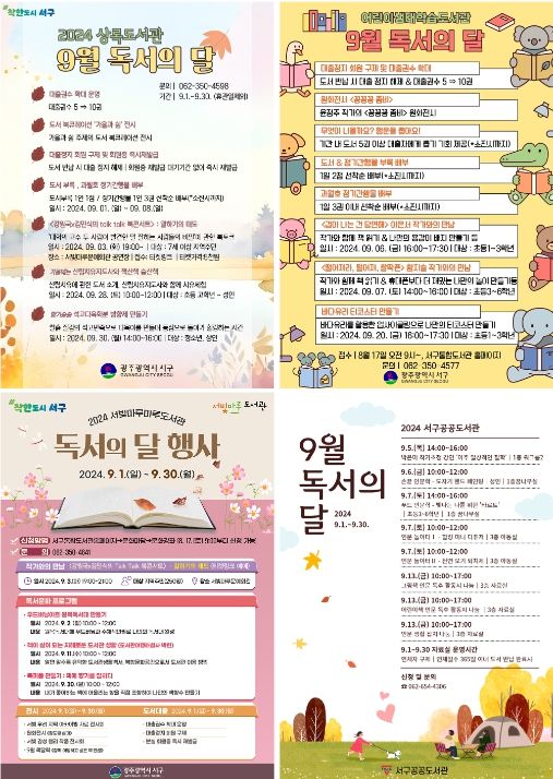 영남연합포커스 김진우 기자 | 광주광역시 서구가 오는 9월 독서의 달을 맞아 풍성한 도서관 행사를 운영한다.