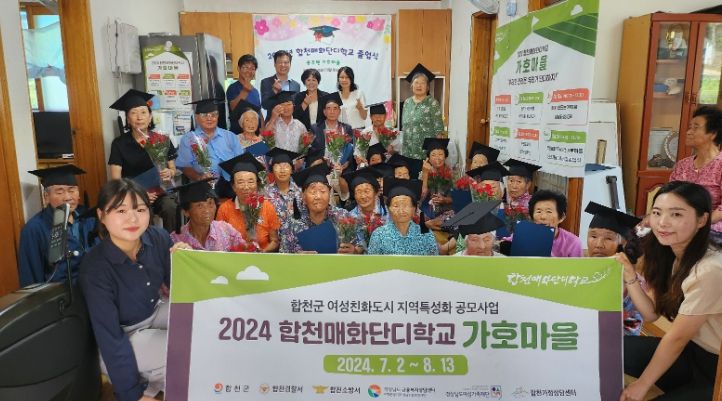 영남연합포커스 김진우 기자 | 합천군과 합천가정상담센터(센터장 송민숙)은 여성친화도시 지역특성화사업의 일환으로 ‘합천매화단디학교’를 7월 2일부터 8월 22일까지 6회기에 걸쳐 대병면 유전마을과 용주면 가호1구마을에 운영하였으며, 지난 13일과 22일에 졸업식을 개최했다.