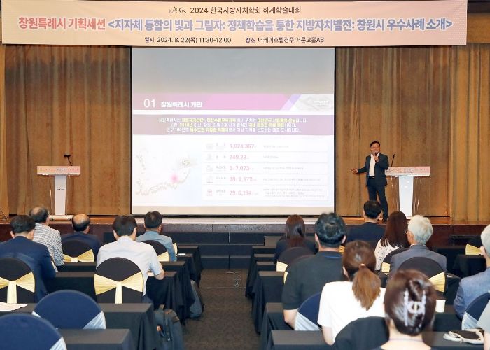 영남연합포커스 김진우 기자 | 창원특례시는 22일 경주에서 열린 2024년 한국지방자치학회 하계 학술대회에 홍남표 시장이 기조 강연자로 특별 초청을 받아 ‘정책학습을 통한 지방자치 발전’을 주제로 발표에 나섰다고 밝혔다.
