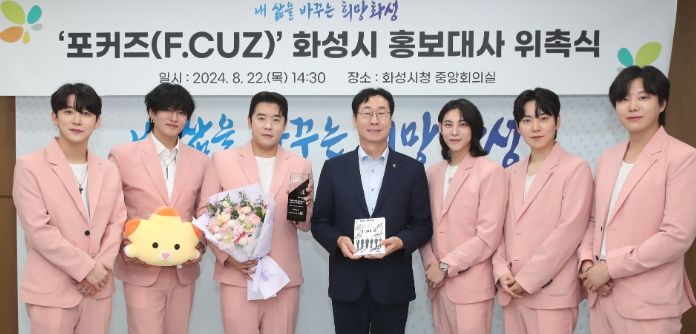 영남연합포커스 김진우 기자 | 화성시는 그룹 가수 포커즈(F.CUZ)를 화성시 홍보대사로 신규 위촉하고 22일 시청 중앙회의실에서 위촉패를 전달했다.