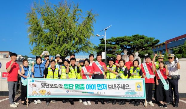 영남연합포커스 김진우 기자 | 금산군은 지난 28일 금산중앙초에서 민관 합동으로 ‘아이 먼저’ 어린이 교통안전 캠페인을 전개했다.