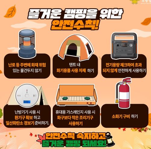 영남연합포커스 김진우 기자 | 천안서북소방서는 최근 가을철 캠핑을 즐기는 사람들이 늘어나면서 각종 안전사고에 대한 각별한 주의를 당부했다.
