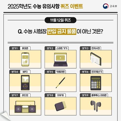영남연합포커스 기자 | Q. 수능 시험장 반입 금지 물품이 아닌 것은?