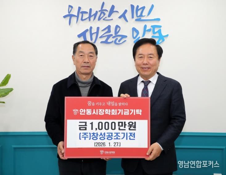 영남연합포커스 김진우 기자 | 지역의 꿈나무들이 마음 놓고 공부할 수 있는 환경 조성과 인재 양성을 위해 노력하고 있는 (재)안동시장학회는 ㈜창성공조기전 천성용 대표가 1월 27일 안동시청 시장실을 방문해 장학기금 1천만 원을 기탁했다고 밝혔다.