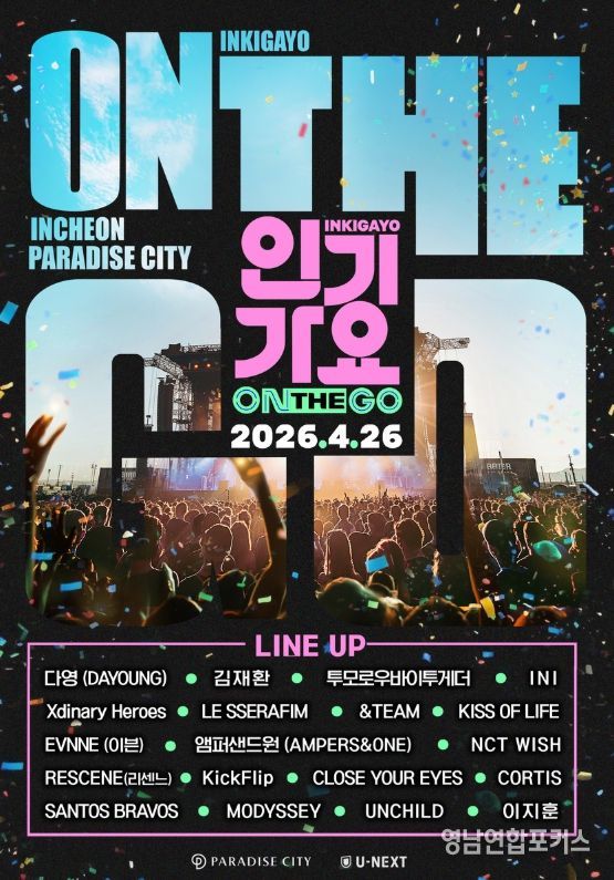 오는 4월 26일(일) 인천 파라다이스시티에서 개최되는 ‘인기가요 ON THE GO’는 SBS 대표 음악 프로그램 ‘인기가요’의 스페셜 공연 프로젝트로, 기존 스튜디오 중심의 음악 방송을 넘어 팬들이 있는 곳으로 직접 찾아가는 콘셉트로 기획됐다. 생방송 현장의 에너지와 공연의 몰입감을 결합한 새로운 형태의 K-POP 공연으로, 아티스트와 관객이 더욱 가까이 호흡하는 특별한 경험을 선사할 예정이다.