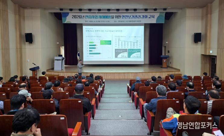 영남연합포커스 관리자 기자 | 영덕군은 산림 현장의 안전사고를 예방하고 근로자의 보건 안전을 강화하기 위해 지난 23일 영덕 로하스 수산식품지원센터에서 ‘산림사업 재해예방 안전보건 관리 강화교육’을 시행했다.