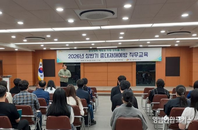영남연합포커스 김종설 기자 | 대구 서구청은 지난 24일 서구청 대회의실에서 구청 직원 및 도급 사업(발주 공사 포함) 업체를 대상으로 '2026년 상반기 중대재해예방 직무교육'을 실시했다.