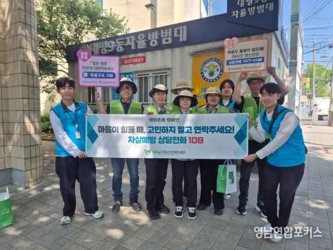 영남연합포커스 김종설 기자 | 대구 남구보건소(남구정신건강복지센터)는 지난 4월 15일 자살 고위험 기간 집중 관리를 위하여 대명9동 일대를 중심으로 대명9동 자율방범대(생명지킴이)와 협력하여 생명존중 가두캠페인을 펼쳤다.