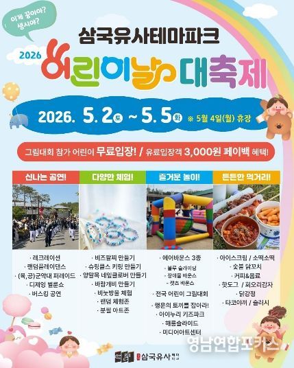 영남연합포커스 관리자 기자 | 군위문화관광재단이 다가오는‘2026 어린이날 대축제’를 더욱 알차게 즐길 수 있는 상세 일정과 장소별 프로그램을 전격 공개했다.