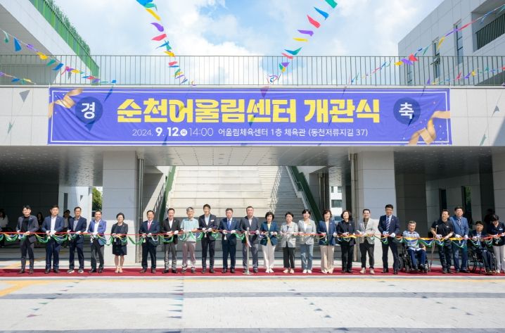 영남연합포커스 김진우 기자 | 순천시는 12일 오천그린광장 인근에 건립된 문화·체육 융복합시설인 순천어울림센터 개관식을 개최했다고 밝혔다.