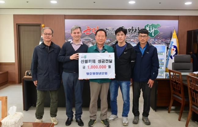 윤석훈 명호면청년모임 회장은 “산불 피해 소식을 접하고 어려운 시기일수록 함께 힘을 모아야 한다는 뜻을 모아 청년모임에서 자발적으로 성금을 모으게 됐다.”며, “작은 정성이지만 도움이 되길 바란다.”라고 말했다.