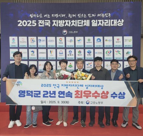 영남연합포커스 김진우 기자 | 영덕군은 지난달 30일 고용노동부가 주최한 ‘2025년 전국 지방자치단체 일자리 대상’에서 작년에 이어 2년 연속 ‘최우수상’을 거머쥐었다.