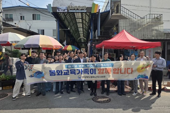 영남연합포커스 김진우 기자 | 경상북도봉화교육지원청은 추석을 앞둔 2일 지역 전통시장에서 전 직원이 함께하는 ‘추석맞이 장보기 행사’를 진행했다. 이번 행사는 지역 상권을 살리고 전통시장 이용 분위기를 확산하기 위해 마련됐다.