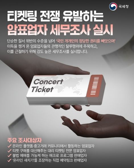 영남연합포커스 기자 | 단순한 질서 위반의 수준을 넘어 '국민 개개인의 정당한 권리를 빼앗으며' 이득을 챙겨 온 암표업자들의 관행적인 탈루행위에 주목하고, 이를 근절하기 위해 강도 높은 세무조사를 실시합니다.