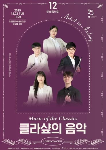 영남연합포커스 김진우 기자 | 안동문화예술의전당은 지역예술인들에게 다양한 무대 경험을 제공하고, 시민에게는 일상 속 음악 향유할 수 있는 기회를 마련하고자, 매월 첫째 주 화요일 오전 11시에 로비음악회 시리즈를 진행하고 있다. 올해 마지막 로비음악회는 ‘클라샵’의 공연으로 12월 2일 오전 11시, 웅부홀 로비에서 '클라샾의 음악'이라는 제목으로 개최된다.