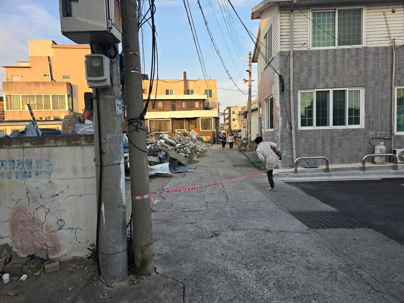 사진 속에서 확인되는 현장은 골목과 주택가 사이에 위치해 있어 주민, 노약자, 학생들의 통행량이 적지 않은 골목이다. 그러나 공사 구역과 보행로의 구분은 모호했고, 일부 주민들은 안전줄을 넘어 직접 통과하거나, 무너진 담장 옆을 비켜 지나며 스스로 위험을 감수해야 하는 상황에 놓여 있었다. 이는 「산업안전보건법」 및 「건설폐기물 재활용 촉진법」이 규정한 최소한의 공사장 안전관리 기준에도 미치지 못하는 조치다.