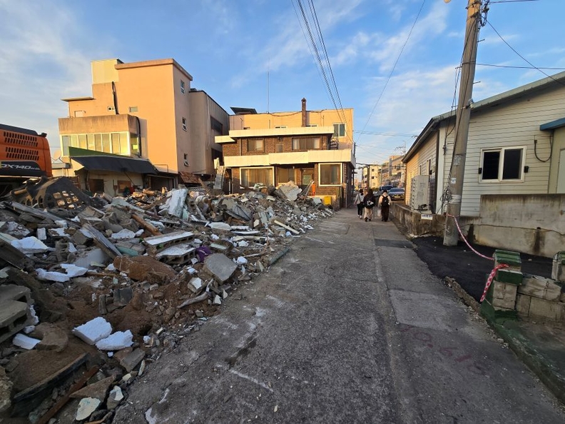 철거잔해는 도로변에 그대로 쌓여 있었으며, 콘크리트 파편·스티로폼·철근·혼합폐기물 등이 뒤섞여 방치되어 있었다.