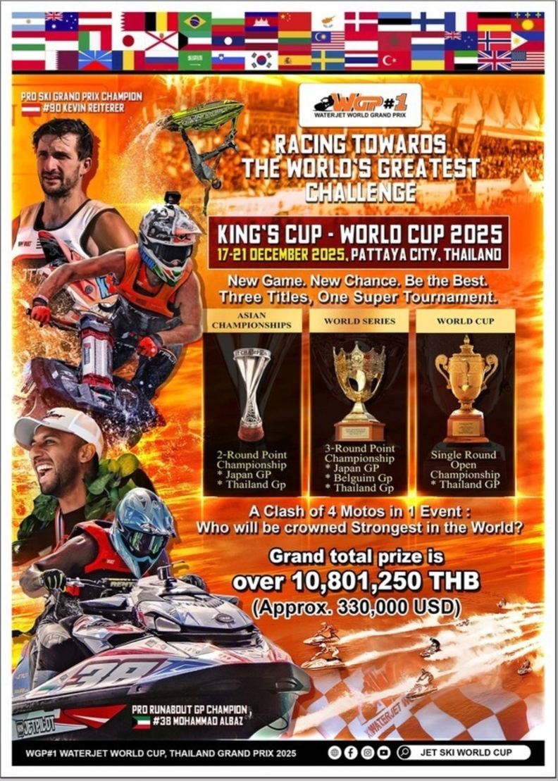 WGP#1 대회는 지난 2015년 태국 파타야 좀티엔 비치에서 ‘킹스컵 제트스키 월드컵’으로 처음 시작된 이후, 2018년부터 WGP#1이라는 명칭으로 대회 위상이 한층 강화됐다. 특히 2025년에는 WGP#1 워터젯 월드컵 및 월드시리즈와 연계 개최되며, 아시아를 넘어 세계 수상스포츠 팬들의 이목이 집중되고 있다.