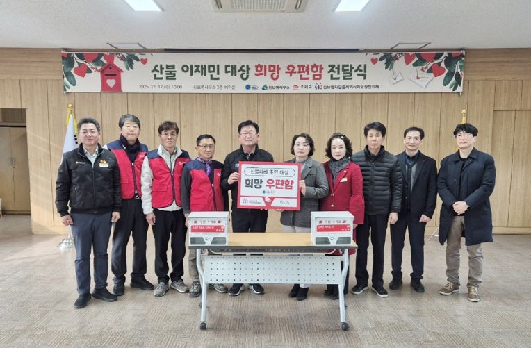 영남연합포커스 김진우 기자 | 청송군은 17일 진보면사무소 2층 회의실에서 산불 이재민을 위한 ‘희망 우편함’ 전달식을 개최했다고 밝혔다.