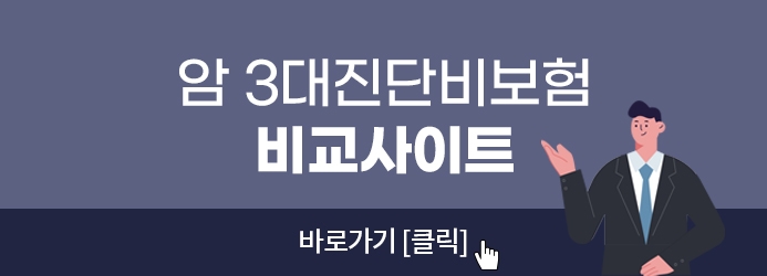 암을 비롯한 3대진단비보험 가입 시 나의 상황에 맞춰 적정 진단금액 설계 및 실시간 보험료 비교가 가능한 비갱신형 암보험 비교사이트를 활용하는 것도 매우 유용한 방법이다. 표적항암치료비보험 특약 유무, 대장점막내암의 유사암이 아닌 일반암 진단비 지급여부 확인 등 보험료 비교뿐 아니라 보험종류별 보장내용, 보험료납입면제 여부 등 다양한 가입조건에 대해서 상담 전문가와 주말까지도 상담이 가능하므로 3대진단비 등 종합건강보험 가입 시 편리하게 상품선택에 도움을 받을 수 있을 것이다.