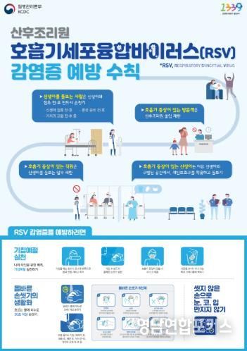 호흡기세포융합바이러스(RSV) 예방을 위해서는 ▲기침예절 실천 ▲흐르는 물에 30초 이상 올바른 손씻기 ▲씻지 않은 손으로 눈, 코, 입 만지지 않기 ▲실내에서 자주 환기하기 ▲발열, 호흡기 증상 시 의료기관 방문하여 적절한 진료 받기 ▲장난감, 식기 등 많이 만지는 물건 자주 소독하기 등을 생활속 실천이 중요하다.