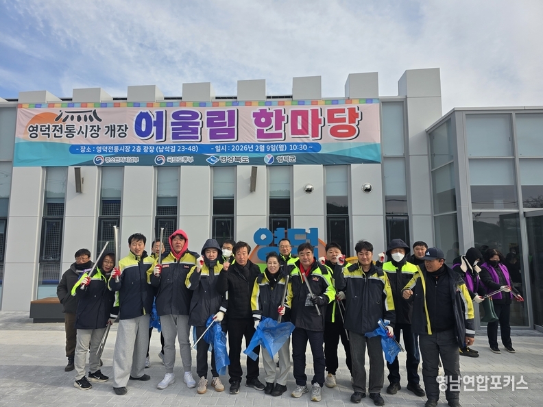 영덕군이 설 명절을 앞두고 지역 중심 상권인 영덕전통시장 일원에서 대규모 환경정화 활동을 펼쳤다. 이번 행사는 ‘2026 설맞이 국토대청결 세부 추진 계획’에 따라 추진된 것으로, 김광열 군수와 김성호 군의회 의장을 비롯해 공직자, 사회단체 회원 등 약 300여 명이 참여해 지역 곳곳을 정비했다.