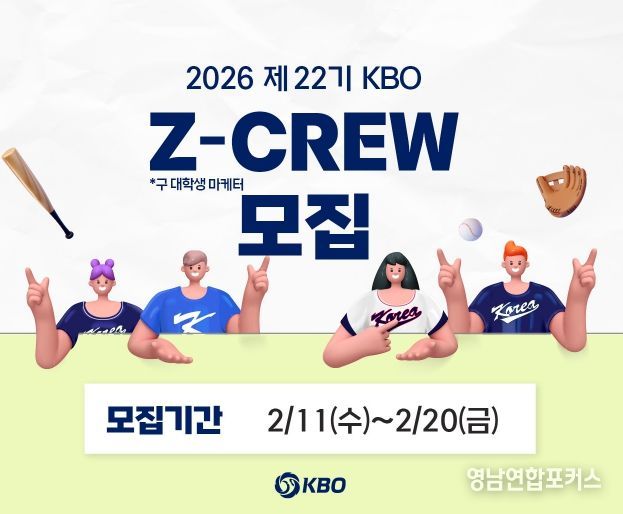 영남연합포커스 기자 | KBO가 2월 11일(수)부터 2026 제 22기 KBO Z-CREW(제트크루)를 모집한다.