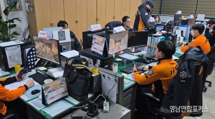 영남연합포커스 김진우 기자 | 울진소방서는 지난 10일 현장대응단 등 직원 30명이 참여한 가운데 PC 기반의 ‘가상재난 시뮬레이션 팀 단위 모의전술훈련’을 실시했다.
