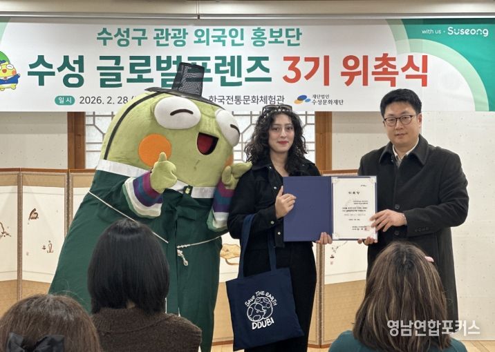 영남연합포커스 김종설 기자 | 대구 수성문화재단(이사장 김대권)은 지난달 28일 한국전통문화체험관에서 수성구 관광 외국인 홍보단 ‘수성 글로벌 프렌즈 3기’를 위촉했다고 밝혔다.