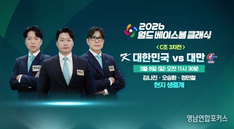 영남연합포커스 기자 | 2026 월드 베이스볼 클래식(WBC) 1라운드에서 대한민국이 8강 진출을 향한 중요한 승부를 앞두고 있다. MBC는 오늘(8일) 오전 11시 30분부터 일본 도쿄돔에서 열리는 대한민국과 대만의 WBC 1라운드 3차전 경기를 도쿄 현지에서 생중계한다.