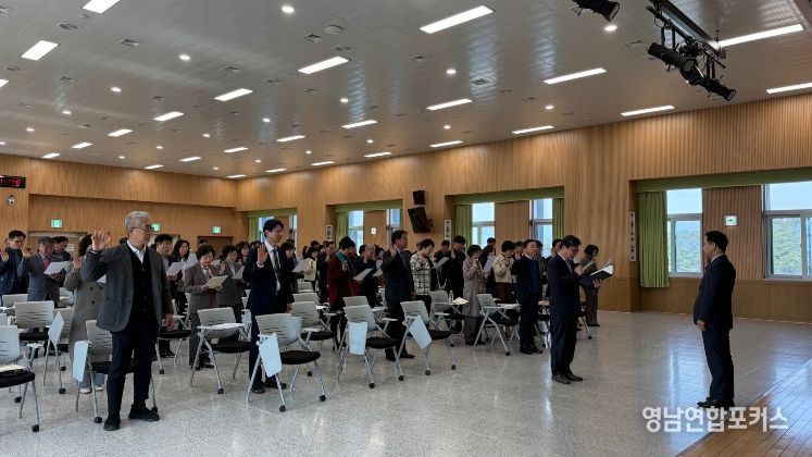 영남연합포커스 김진우 기자 | 경산교육지원청은 2026. 3. 9. 청사 강당에서 경산 관내 교장 60여명이 참석한 가운데 청렴서약식을 실시했다.