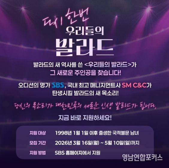영남연합포커스 기자 | 시즌2로 돌아오는 SBS ‘우리들의 발라드’가 발라드 신화를 이을 새로운 목소리를 찾는다.